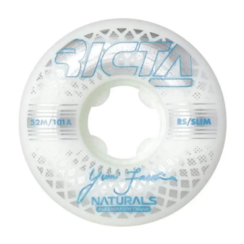 Le Ruote da Skate Ricta sono costruite in uretano per durare a lungo su tutti le superfici in street e in park. Ideate con una speciale costruzione per bloccare i cuscinetti ed aumentare la velocità .